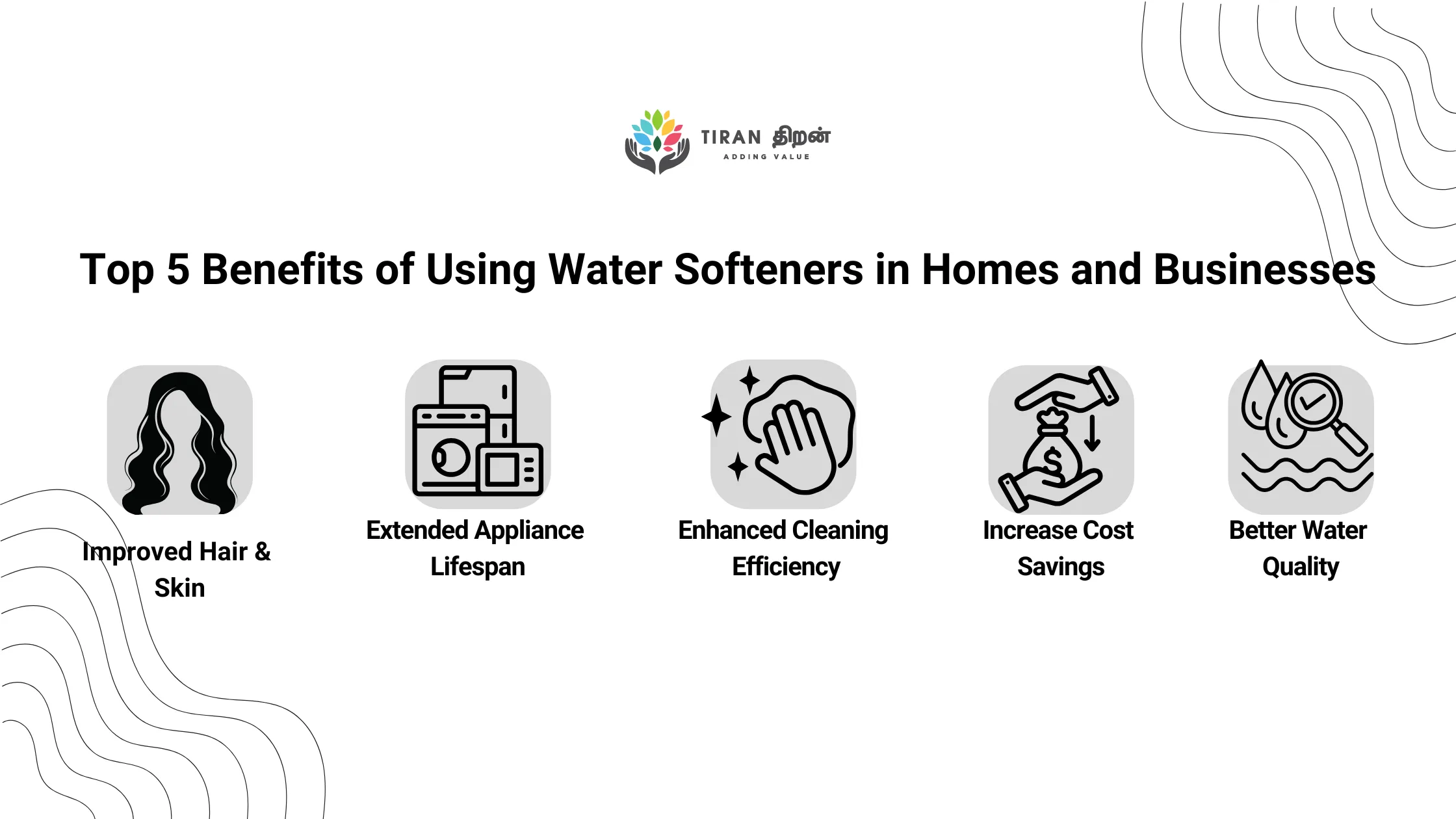 In summary, the benefits of using water softeners in homes and businesses are extensive. From improving hair and skin health to extending the lifespan of appliances, enhancing cleaning efficiency, achieving cost savings, and ensuring better water quality, water softeners provide a multitude of advantages. Investing in a water softener can lead to a healthier, more efficient, and cost-effective living and working environment.